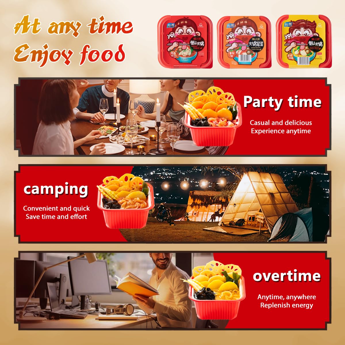 Yumei Instant Hotpot Self-Heating 425g, with Vegetables and Noodles in, Golden Soup Flavor Pack of 3 (Golden Soup)
