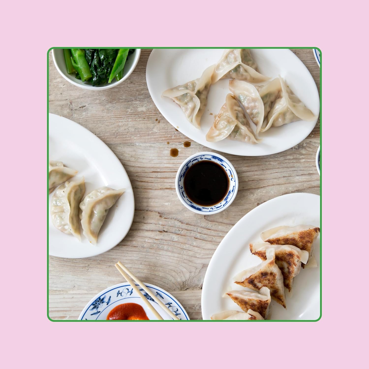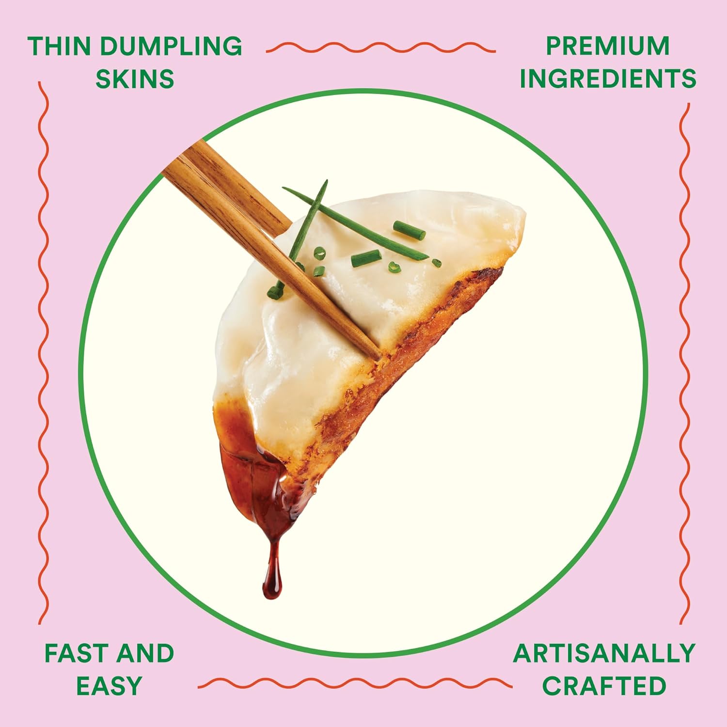 Savory Pork & Chive Filling — Dumplings made with 100% premium Berkshire pork and garlicky Chinese chives—savory, aromatic, and packed with 9g of satisfying protein and 5g of fiber