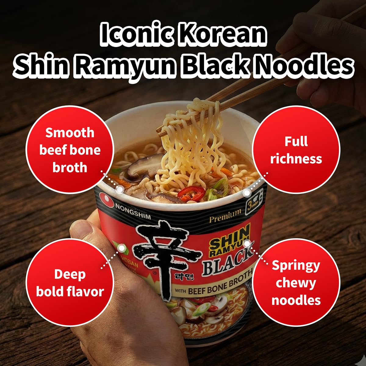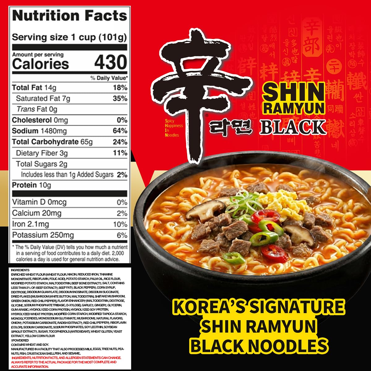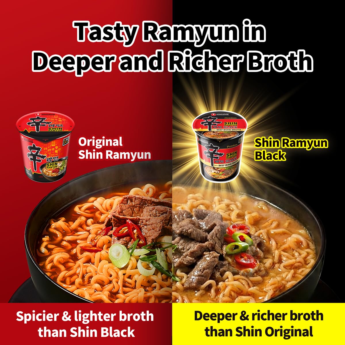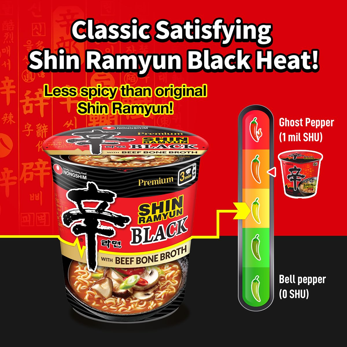 Deeper Flavor with Double Soup Base: Shin Ramyun Black uses added beef bone broth for extra depth and less heat than the original. A second soup base brings layered, full-bodied Korean flavor.