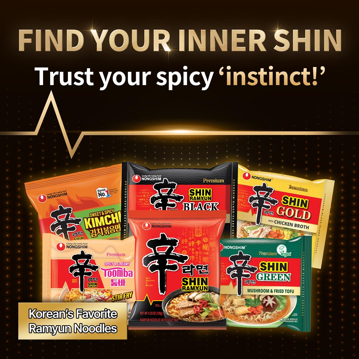 Deep, Bold, and Extra Rich: Shin Ramyun Black brings an elevated twist to the classic favorite, featuring a deep beef bone broth layered with signature Korean spice. For those who crave more depth and richness with every spicy bite.