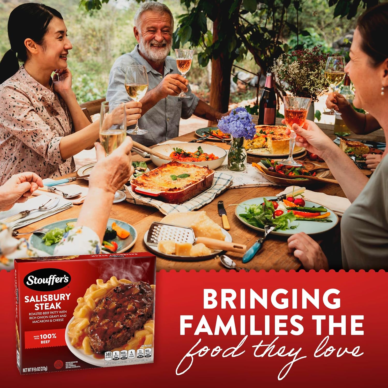 • CRAFTED WITH QUALITY YOU CAN TASTE Stouffer’s frozen dinners are thoughtfully crafted with flavorful, quality ingredients. Our Salisbury steak dinner is made with roasted beef patty, a rich onion gravy, and macaroni and cheese