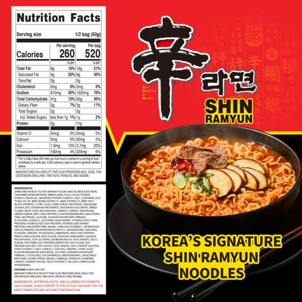 Nongshim Shin Ramyun Noodles, Spicy Korean Signature Instant Ramyun, Rich Beef Flavored Broth, Microwaveable, Korean Instant Noodles, 4.23 oz (Pack of 20), Packaging May Vary.