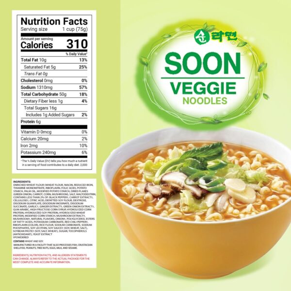Nongshim Soon Cup Noodle Soup, Veggie, 2.6 Ounce (Pack of 6)