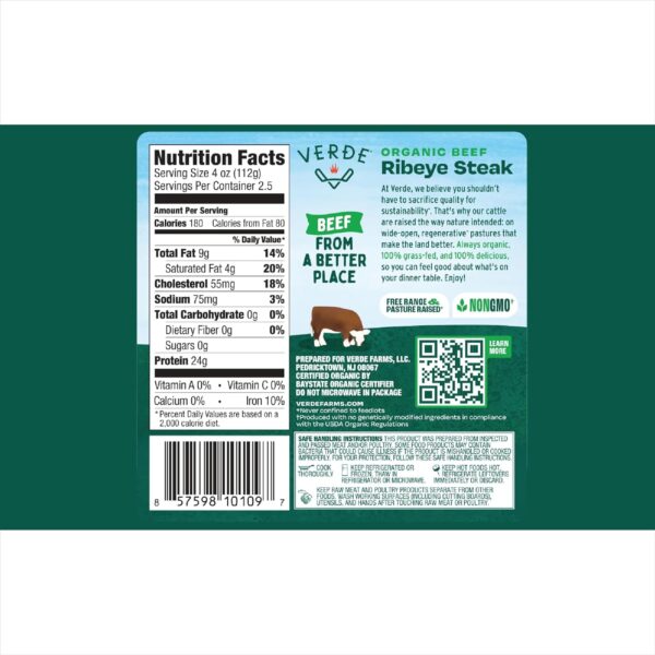 Verde Farms, Beef Ribeye Steak, Organic, Grass-Fed | 0.625 lbs.