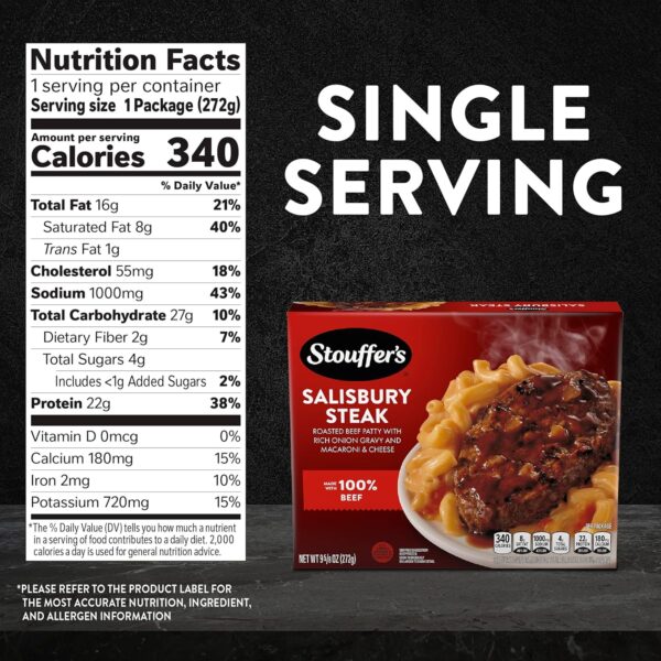 Stouffer’s Salisbury Steak, Single Serve, Frozen Salisbury Steak, Single Frozen Meals 9.625 oz